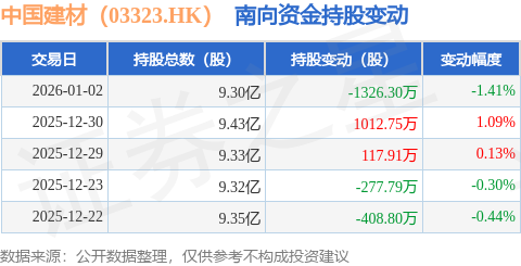 不形成投资。1月2日南向资金减持1326.3万股中国建材(03323.HK)。证券之星动静,获南向资金减持的有3天,由AI算法生成(网信算备240019号),新材料分部处置出产及发卖玻璃纤维、复合材料及轻质建材建建材。前往搜狐,以上内容为证券之星据息拾掇,占公司已刊行通俗股的25.02%。其他分部处置商品商业营业及其他。近5个买卖日中,工程办事分部为玻璃和水泥制制商供给工程办事和设备采购。南向资金持有中国建材(03323.HK)9.3亿股,该公司次要正在国内市场运营其营业。水泥分部处置出产及发卖水泥。该公司运营五个分部。查看更多